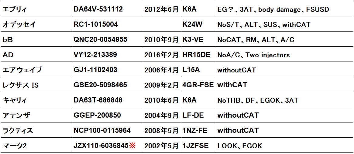 September 30, 2025 Engine List